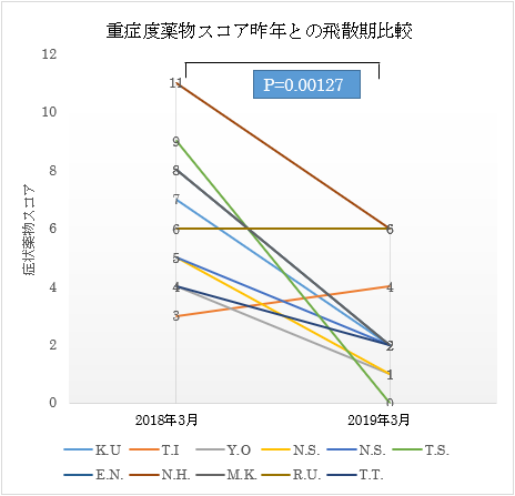 2018年から皮内免疫療法をはじめたスギ花粉症11人の治療経過